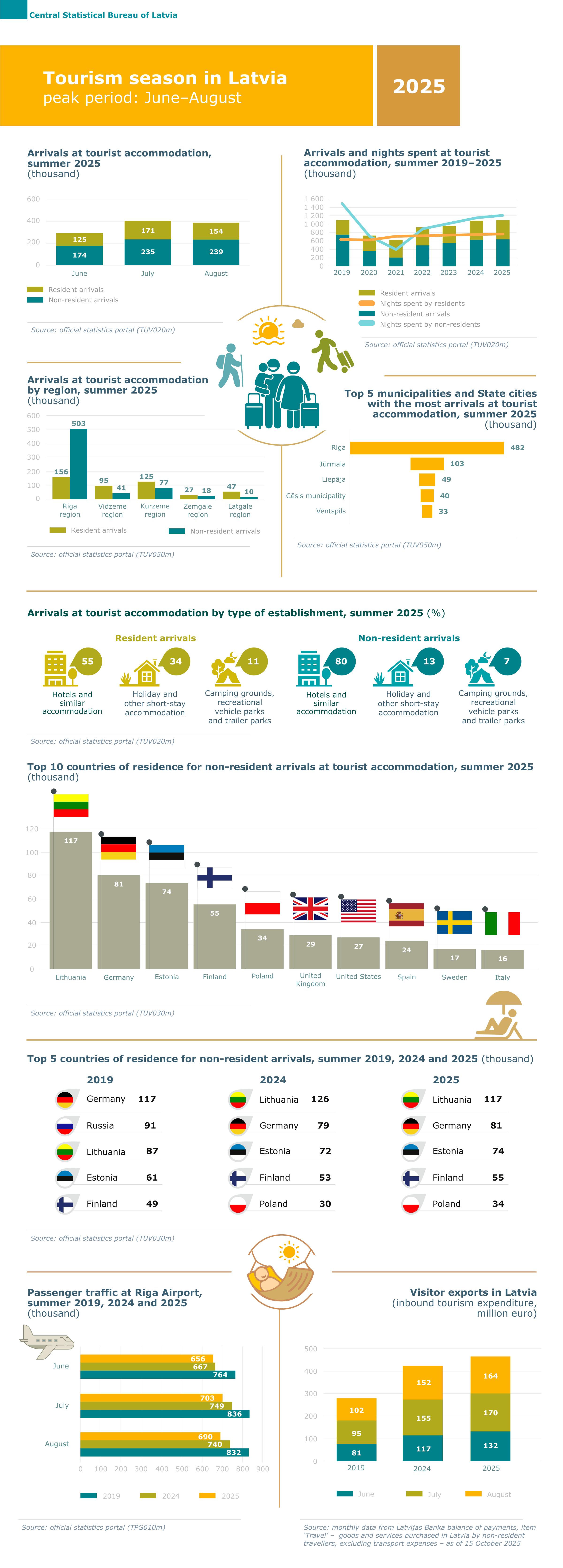 V25004Infographic12.11.2025Tourism season in Latvia, 2025DownloadShareshare on Facebookshare on Xshare on Draugiem.lvCopy URLDate of publication12.11.2025AgencyCentral Statistical Bureau of LatviaThemesBusiness sectorsTourismSee all infographics in search