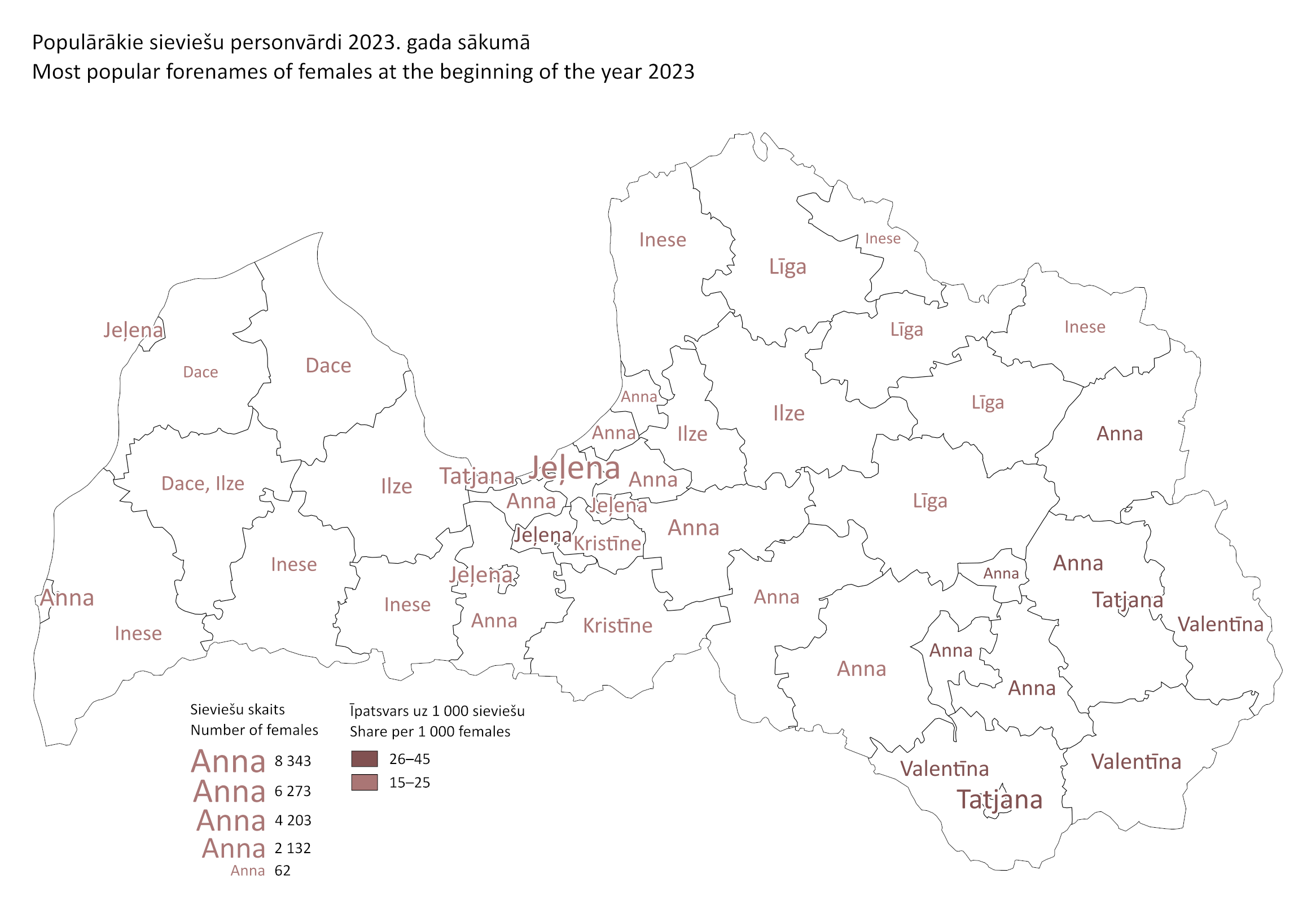 V23024Infografika24.07.2023Populārākie sieviešu personvārdi 2023. gada sākumāLejupielādētIeteiktieteikt vietnē Facebookieteikt vietnē Xieteikt vietnē Draugiem.lvKopēt saitiPublicēšanas datums24.07.2023IestādeCentrālā statistikas pārvaldeTēmasIedzīvotājiVārdi, uzvārdiSkatīt jaunākās infografikas meklētājā