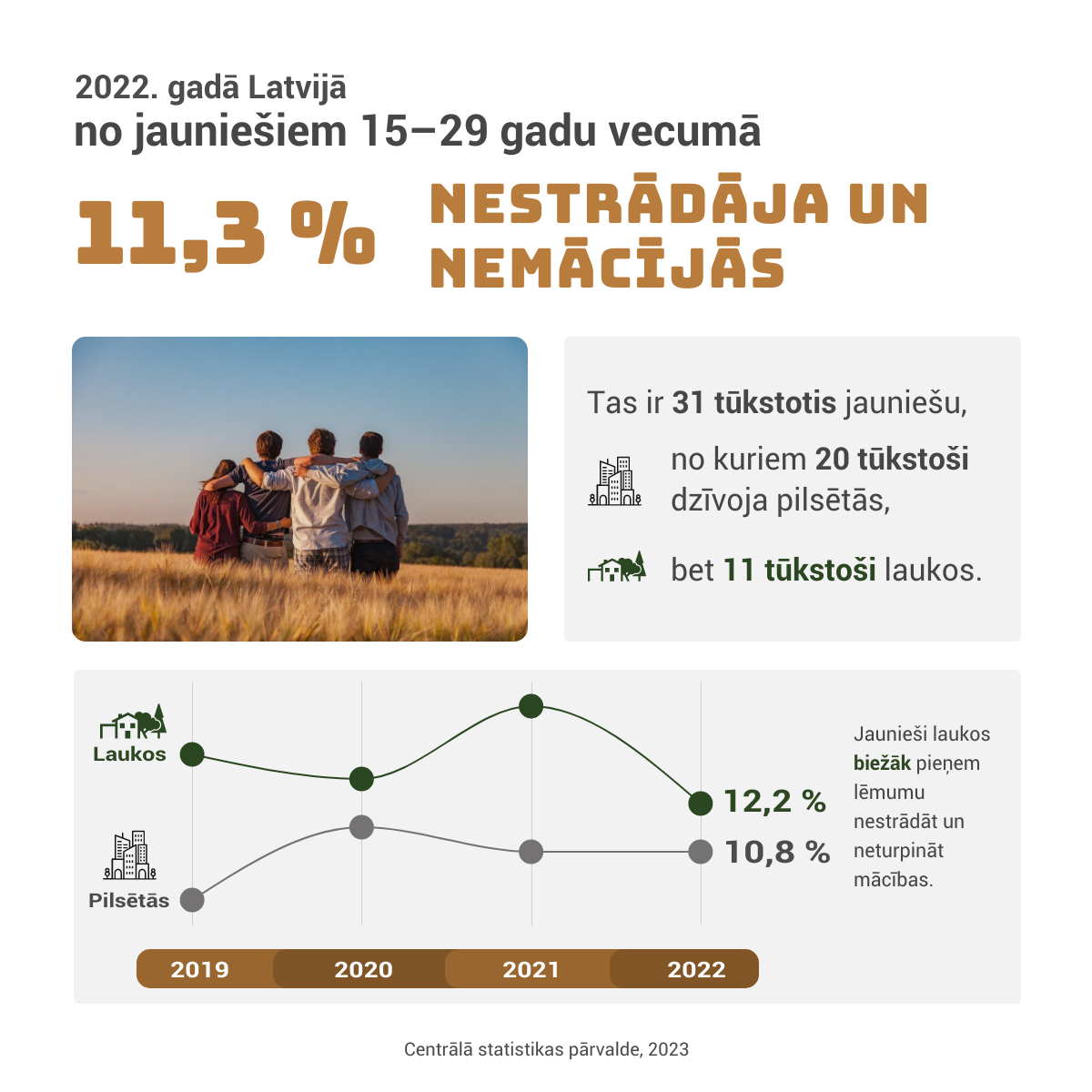 V23014Infografika12.10.2023Jaunieši, ka nemācās un nestrādā, 2022LejupielādētIeteiktieteikt vietnē Facebookieteikt vietnē Xieteikt vietnē Draugiem.lvKopēt saitiPublicēšanas datums12.10.2023IestādeCentrālā statistikas pārvaldeTēmasIzglītība, kultūra un zinātneIedzīvotāju izglītības līmenis un valodu lietojumsSkatīt jaunākās infografikas meklētājā