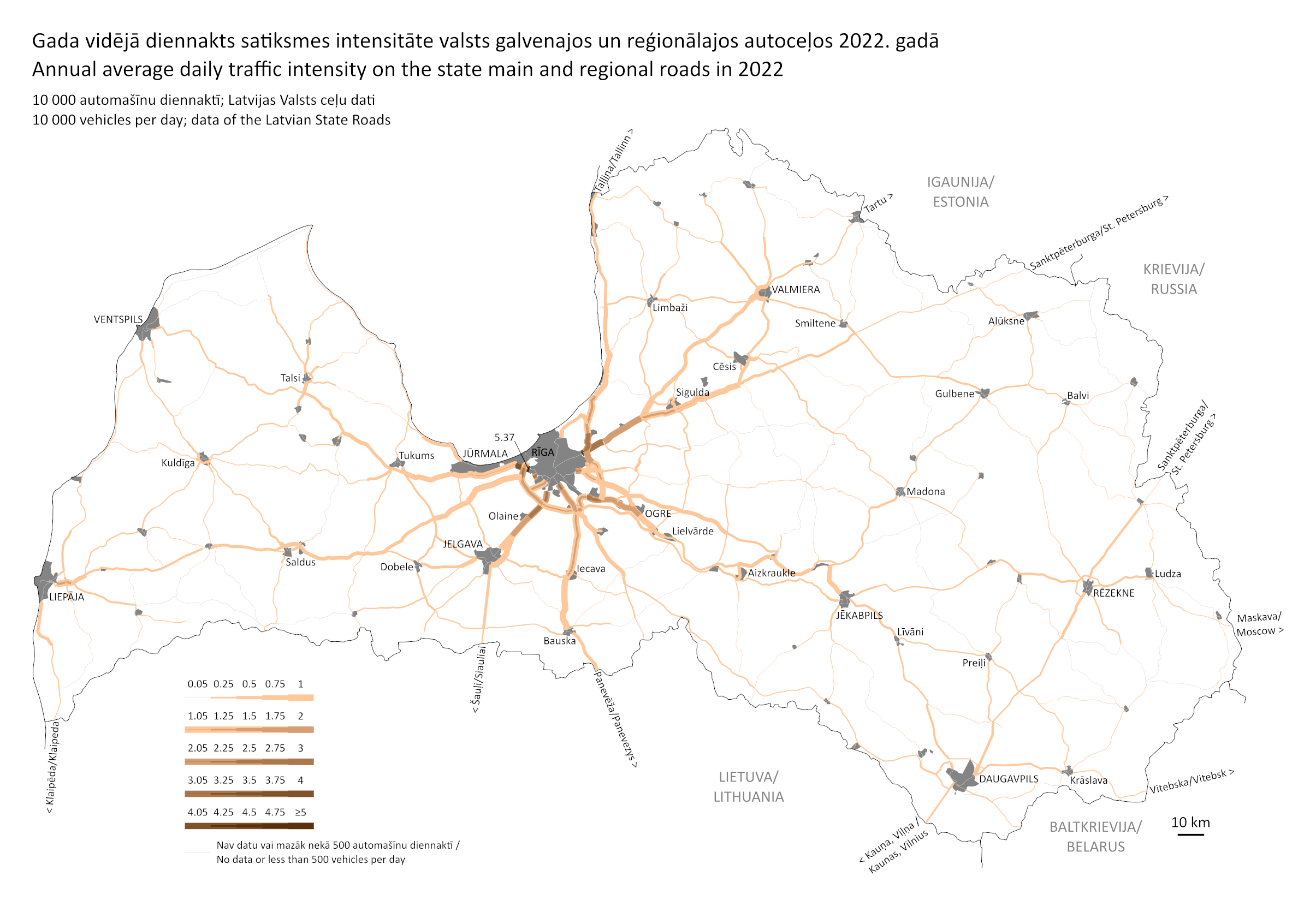 V23010Infografika31.05.2023Gada vidējā diennakts satiksmes intensitāte valsts galvenajos un reģionālajos autoceļos 2022. gadāLejupielādētIeteiktieteikt vietnē Facebookieteikt vietnē Xieteikt vietnē Draugiem.lvKopēt saitiPublicēšanas datums31.05.2023IestādeCentrālā statistikas pārvaldeTēmasNozaresTransportsSkatīt jaunākās infografikas meklētājā